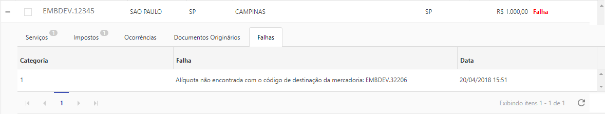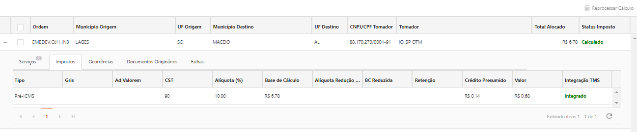 Caso o status do imposto for igual à Falha, é possível realizar o reprocessamento do cálculo.