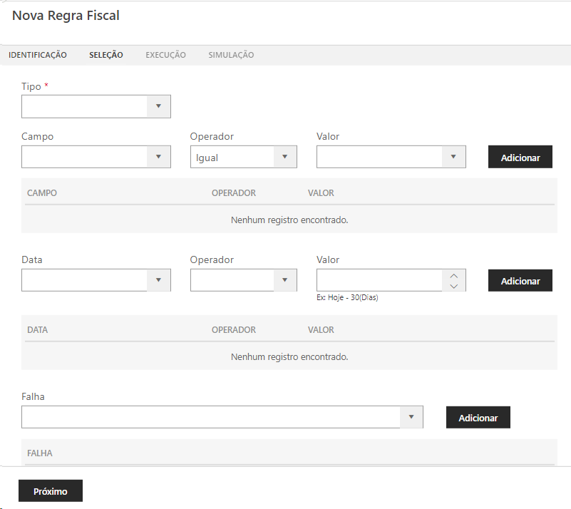 Simulação: Nesta aba é possível ter uma prévia sobre quais documentos a regra será executada.