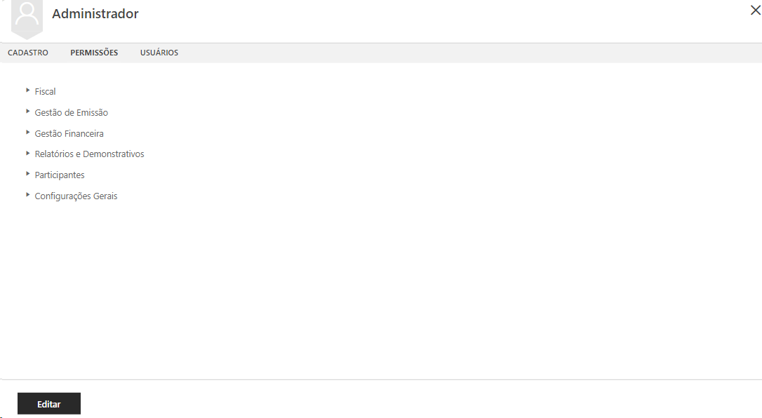 Nesta tela é possível editar as permissões do Grupo