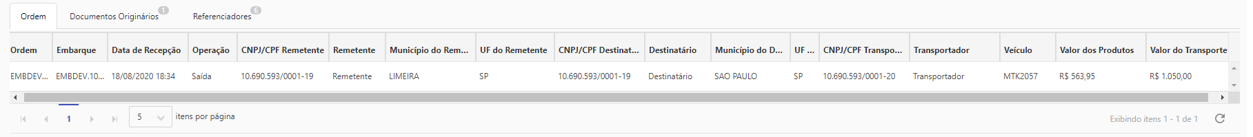 •CNPJ/CPF Transportador: CNPJ do transportador;