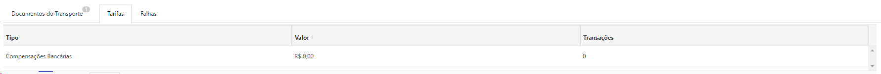 •Tarifas: Através da aba de tarifas é possível visualizar as compensações bancárias, sendo somado o valor para compensação por mês mais o valor para compensação por embarque, o mesmo se aplica as transações.