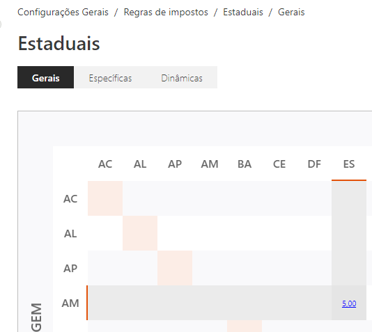 Uma Regra Geral é utilizada quando a regra se enquadra na alíquota padrão conforme a Tabela Interestadual de ICMS. |