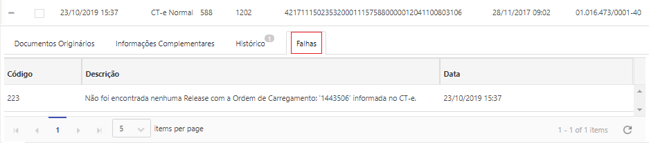 •Falhas - Exibe as falhas vinculadas ao documento quando este possuir validação igual a pendente