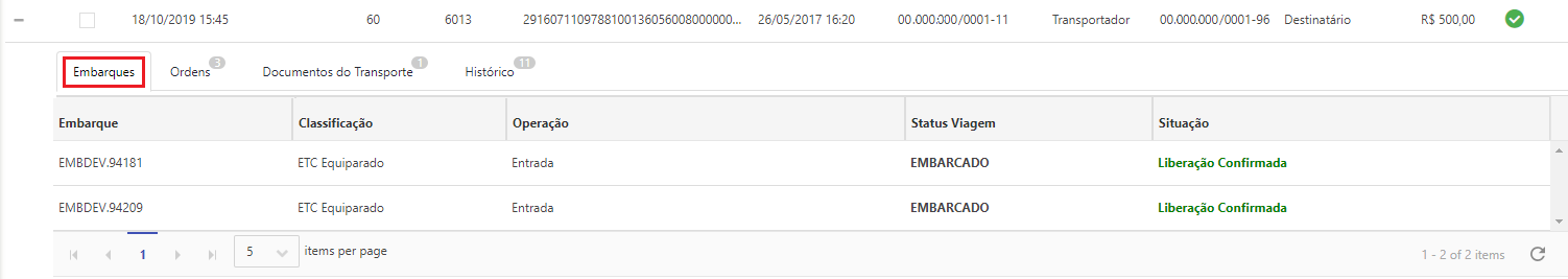 •Embarques: Essa aba apresentará os embarques relacionados ao documento originário.