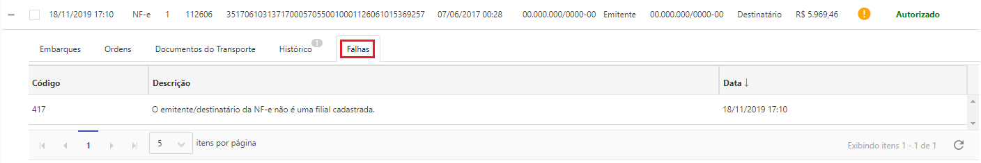 •Falhas: Essa aba apresentará as falhas do documento originário quando este possuir validação igual a pendente