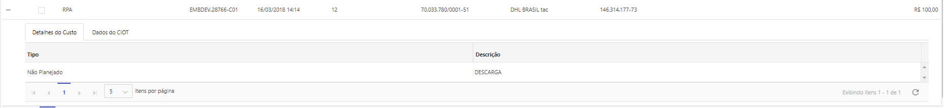 •Detalhes do Custo - Permite visualizar detalhes dos custos pagáveis, para que possa ter conhecimento do que está relacionado ao lançamento do custo para pagamento.