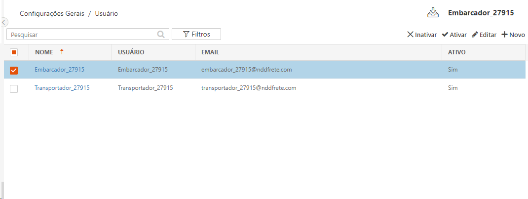 Ativar: Através deste botão é possível ativar usuários que se encontram inativos.