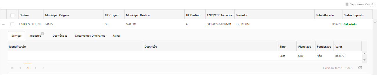 Caso o status do imposto for igual à Falha, é possível realizar o reprocessamento do cálculo.