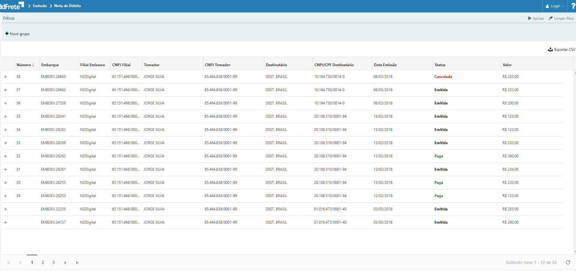 Exportar CSV |