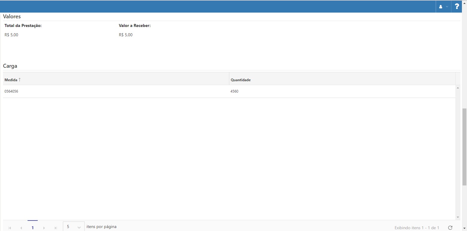 A aba de Serviços/Valores é possível visualizar os serviços de relacionados ao documento, valores, informações da carga e de impostos.