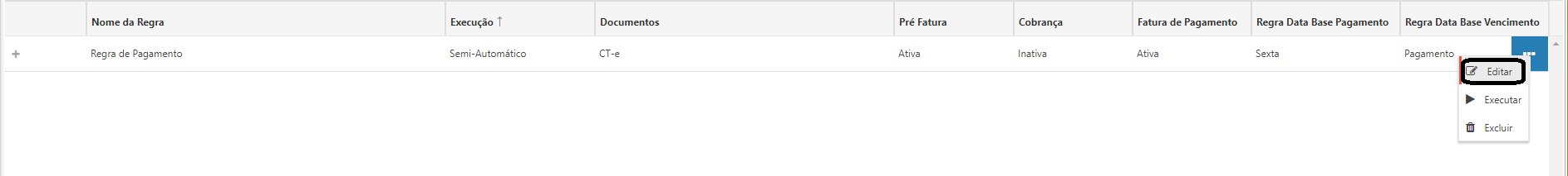 •Editar: Permite a edição de uma regra específica para realização dos ajustes necessários;