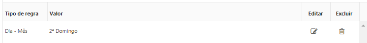 6.Dia-Mês - Utilizando como base de cálculo o mês, essa regra tem a finalidade de indicar o dia e a semana que o documento estará apto para gerar uma fatura.