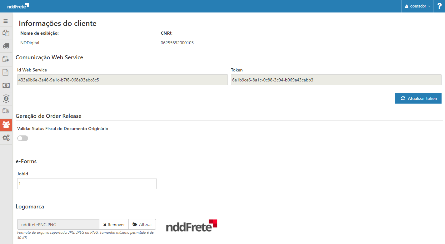 •Logomarca - A logomarca será exibida no relatório de provisão, deve ser um arquivo do tipo JPG, JPEG ou PNG com tamanho máximo de 50KB.