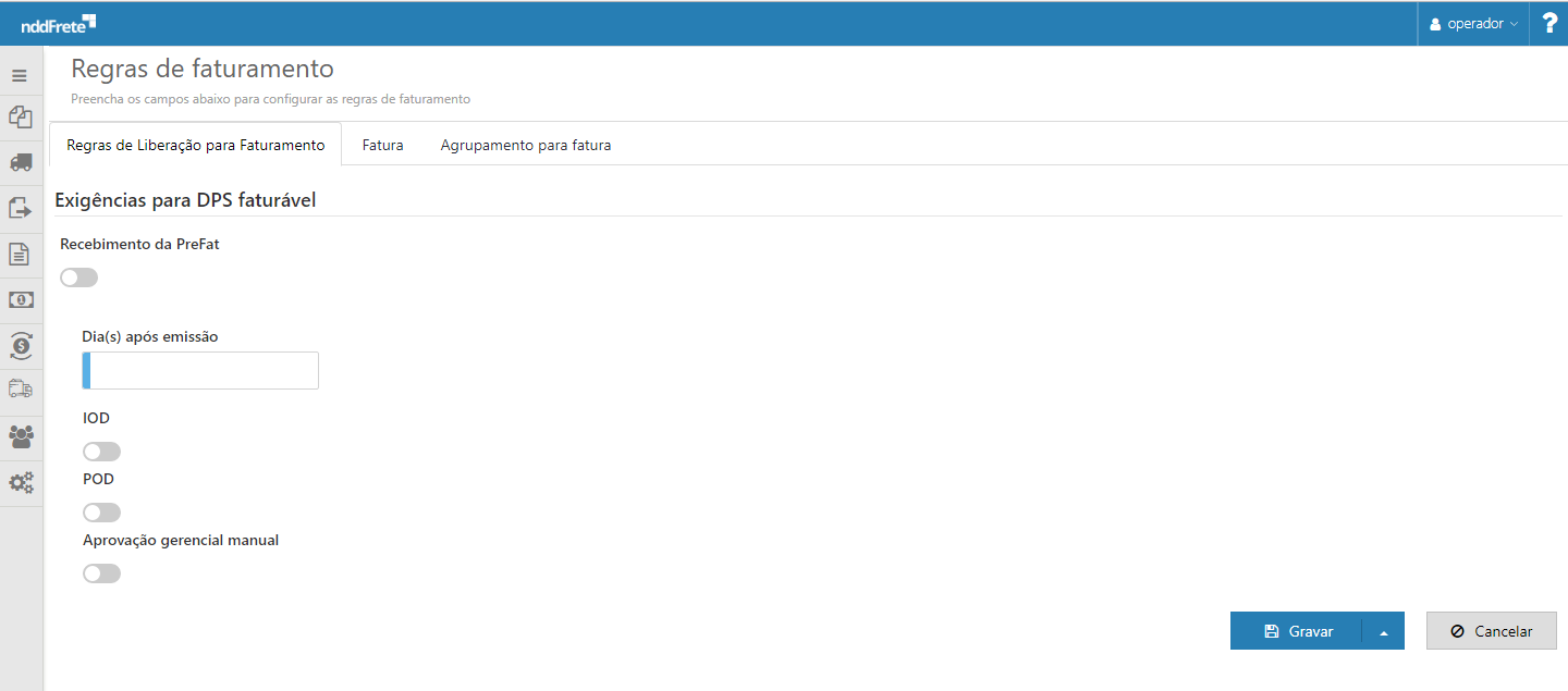 Para que o DPS avance para a próxima fase, podemos estipular regras que o tornem “Faturável”, ou seja, transferir de em operação para faturável, de forma automática.