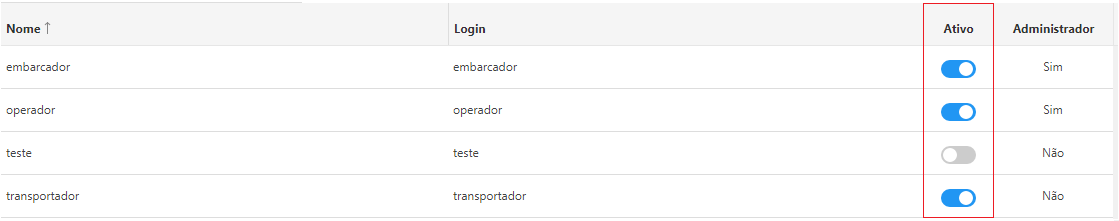 Gestão de usuários dos portais do Operador Logístico, Embarcador e Transportador.