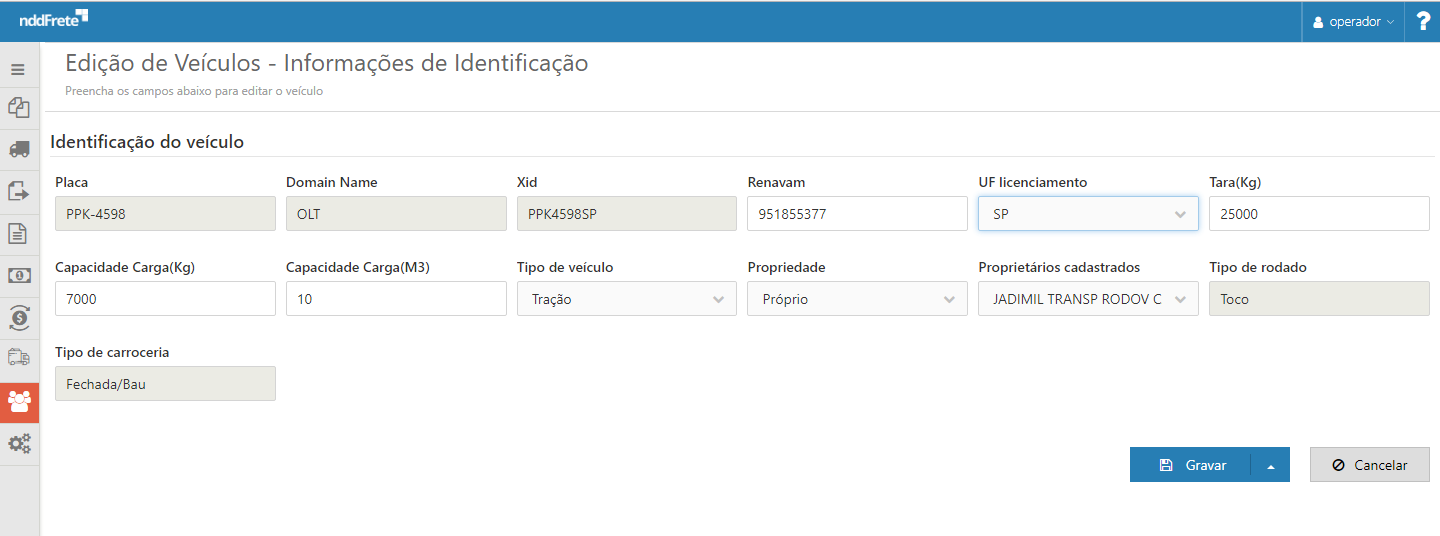 Os dados do veículo são utilizados no planejamento de embarques. E também são enviados no processo de emissão de MDF-e.