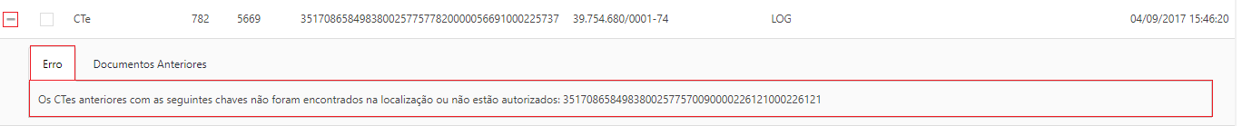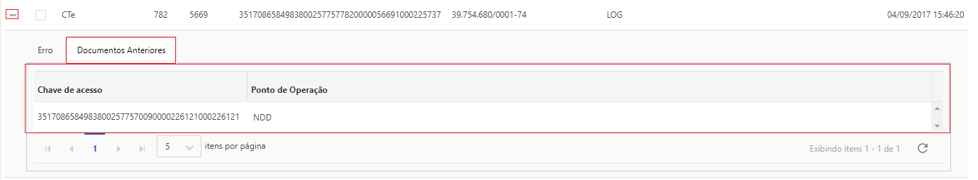 •Documentos Anteriores - Exibe dados do documento anterior relacionado ao documento inconsistente do transportador.