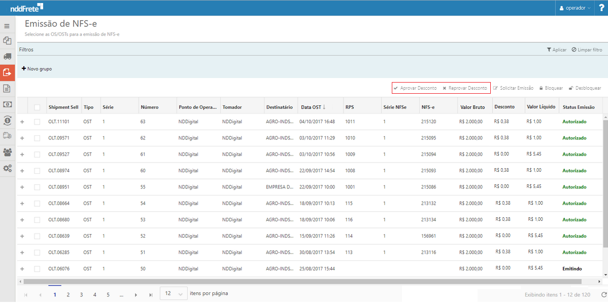 localizada acima da grid, permite aprovar ou reprovar descontos aplicados sobre o valor da NFSe antes da emissão.