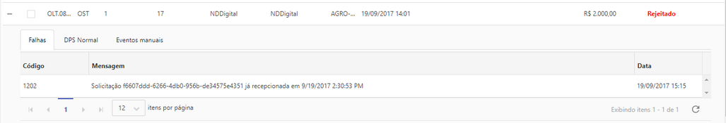 Após solicitar o bloqueio do DPS a linha de exibição deste na grid, será exibida em vermelho.