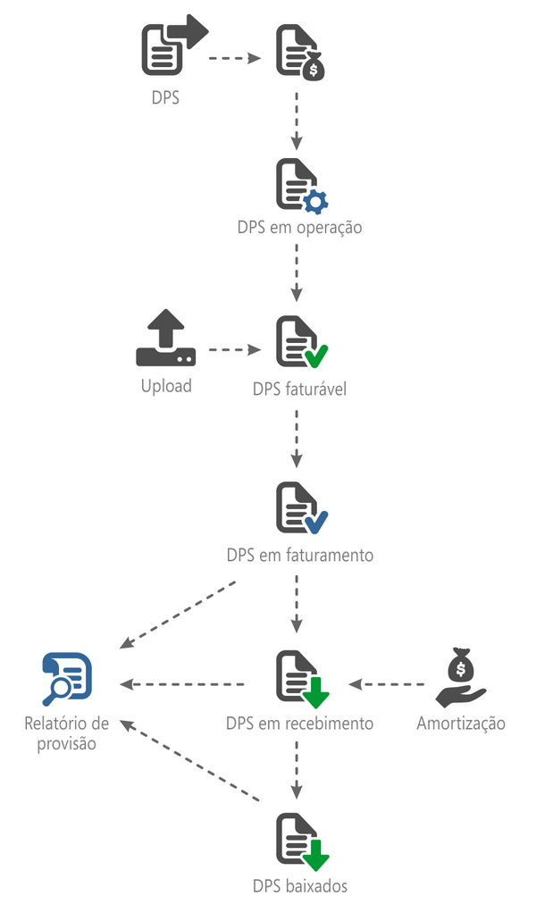 •DPS em Operação - Após a emissão, os DPSs são recepcionados inicialmente no faturamento, onde entrarão em operação.