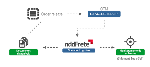 A gestão de transporte consiste em recepcionar os embarques (shipment) de compra (buy) e venda (sell) planejados pelo OTM, a partir da Order Release enviada pelo nddFrete para o OTM, na aplicação, onde a partir do embarque pode ser emitido os DPS.