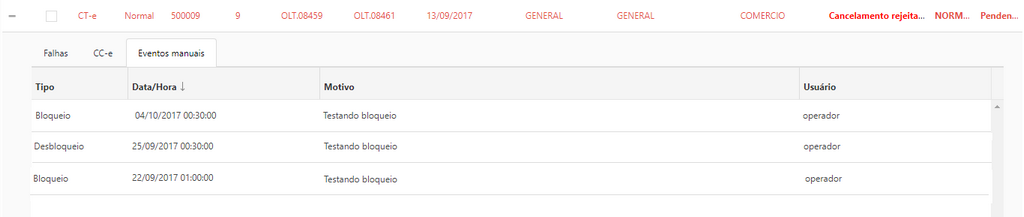 Os eventos gerados para a emissão de CT-e complementar são identificados com o status "complementar pendente", após solicitar a emissão pode acompanhar a emissão através dos seguintes status: