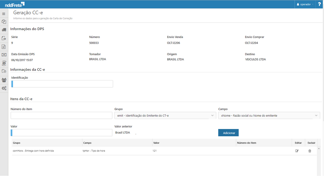 A identificação será exibida juntamente com a carta de correção nos detalhes do CT-e, portanto o preenchimento desta informação facilitará sua distinção.