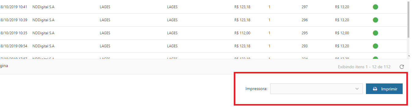 Abaixo da grid localiza-se a opção de imprimir, para a impressão de NFSe.