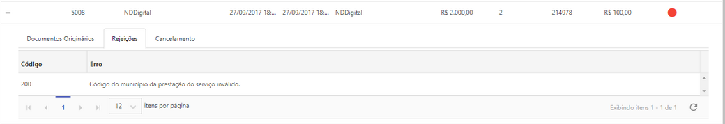 •Rejeições - Em caso de falhas, é possível visualizar o motivo nesta aba.