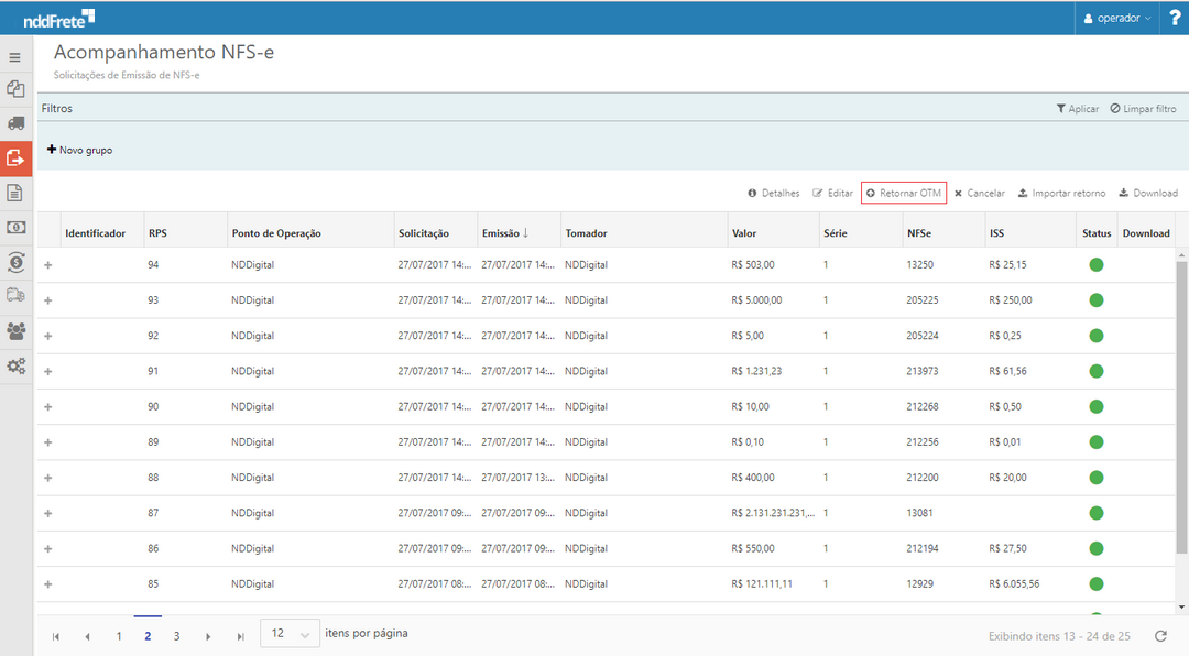 localizada acima da grid, permite importar manualmente o retorno da prefeitura que não possuir web service.