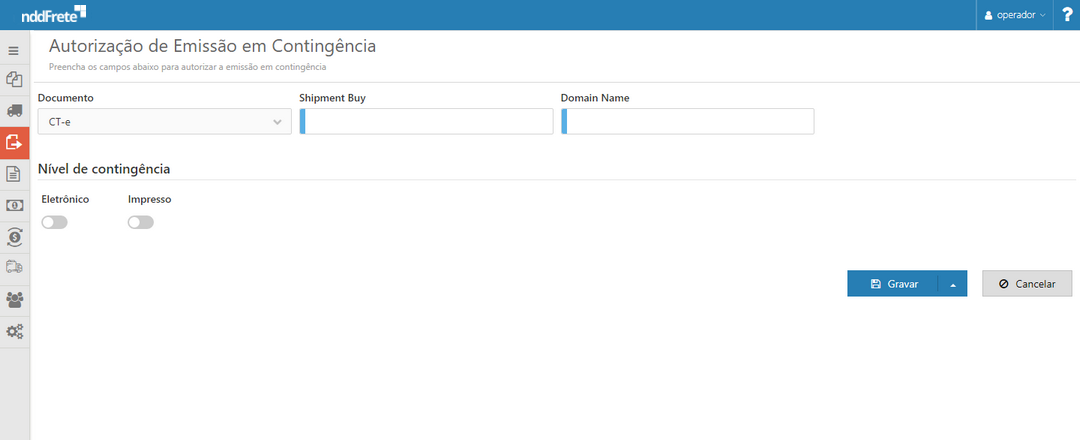 •Domain Name - Nome de domínio do shipment buy, a ser autorizado para emissão em contingência.