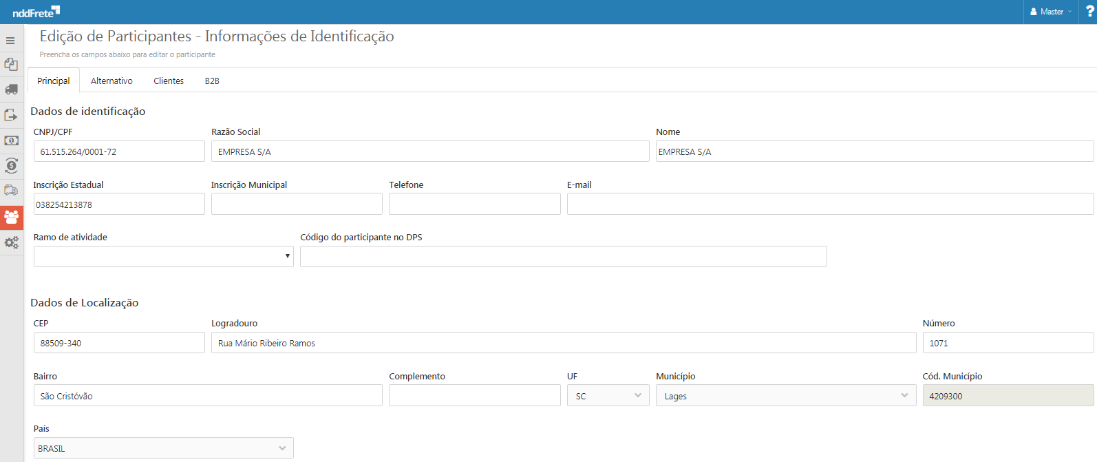 Os campos CNPJ, Razão social e os dados de localização da empresa se tornaram obrigatórios, quando apenas uma destas informações for preenchida na aba "Endereço Alternativo". |