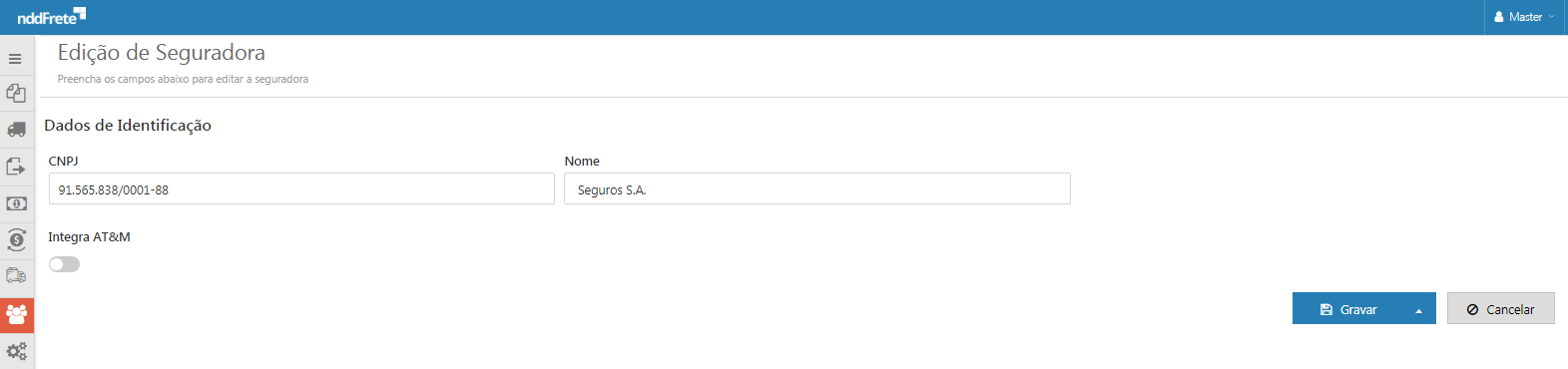 Para editar o registro de uma seguradora já cadastrada na aplicação, acione o botão