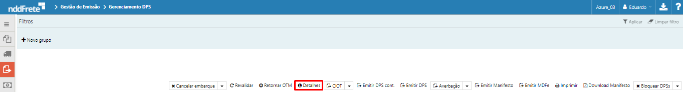 •A situação atual do documento dever ser DPS emitido e pelo menos um DPS do embarque deve ser do tipo "normal". Não é permitido para CTe substituto ou complementar;