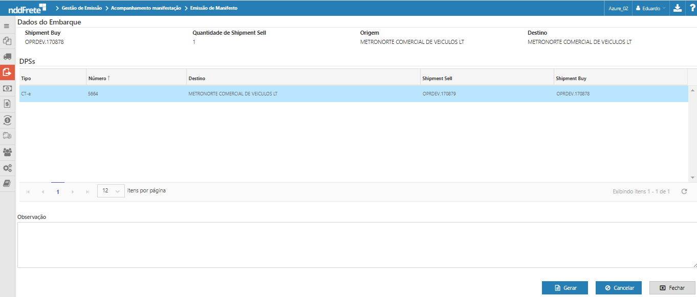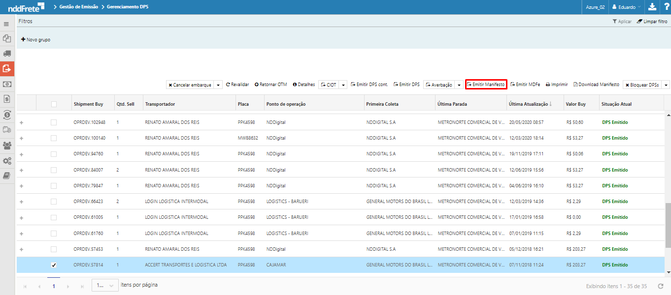 Após solicitar a emissão do manifesto é possível visualizar os manifestos na tela de acompanhamento de manifestação.