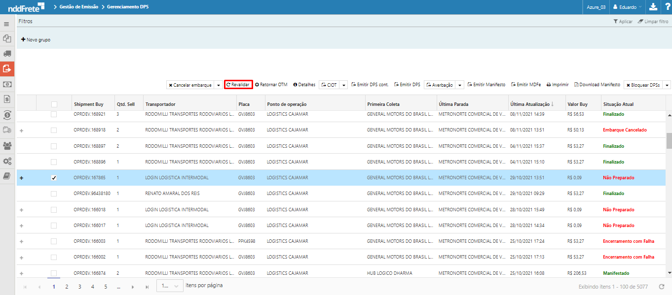É possível utilizar a opção "revalidar", quando feitas correções de inconsistências para o processo de emissão de MDF-e. Além disso, pode se usar esse recurso para revalidar embarques em processo de disponibilização que ocorreram falhas. |