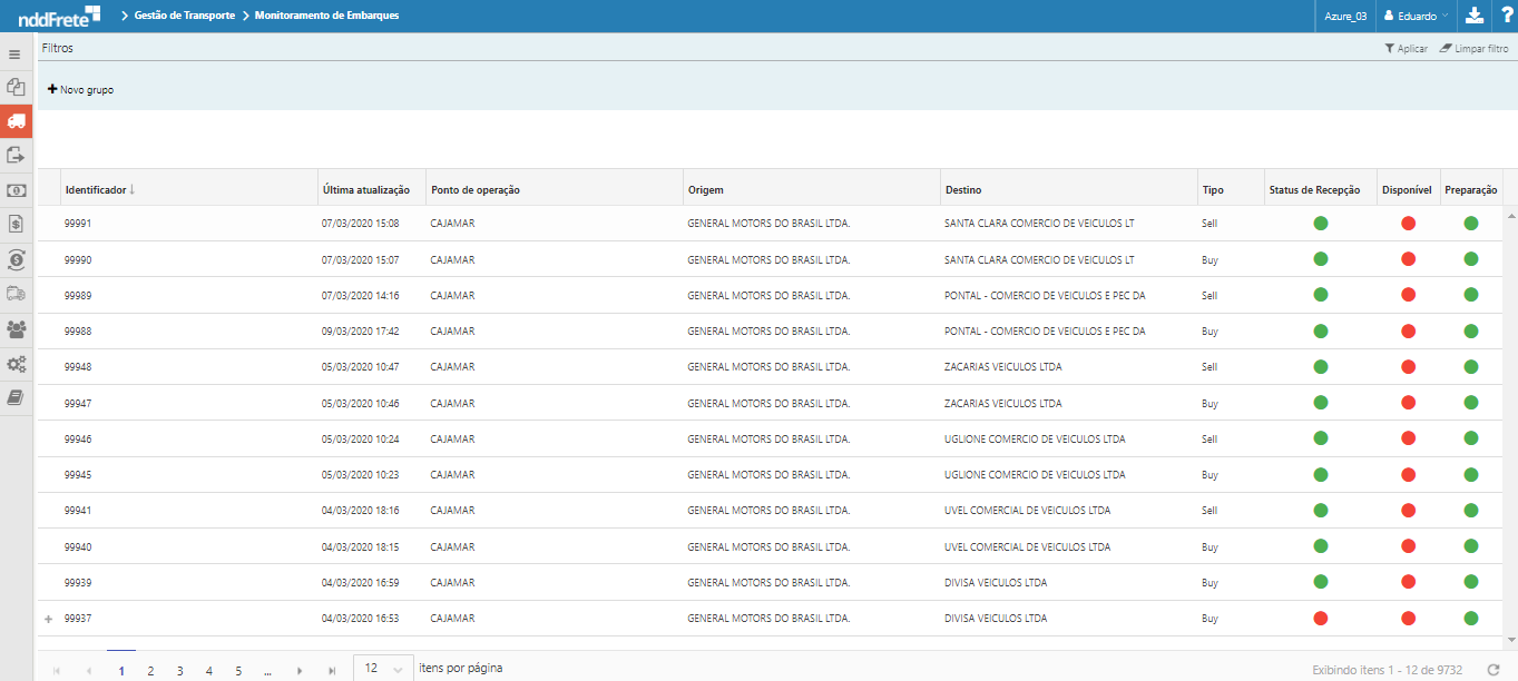 Ao recepcionar um embarque do OTM na aplicação nddFrete, estes ficam disponíveis para visualização no monitoramento de embarque.