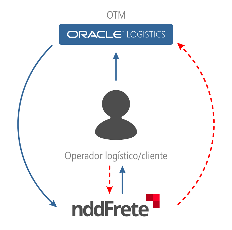 Os documentos que originam o transporte são as NF-e (Nota Fiscal Eletrônica) e NOTFIS, que as embarcadoras remetem ao NddFrete, onde este gera uma ordem de liberação para processamento junto ao planejamento logístico do OTM .