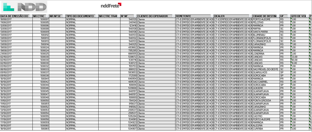 •Nº NF - Número do documento originário (cada documento originário do CT-e será uma linha do relatório de provisão).
