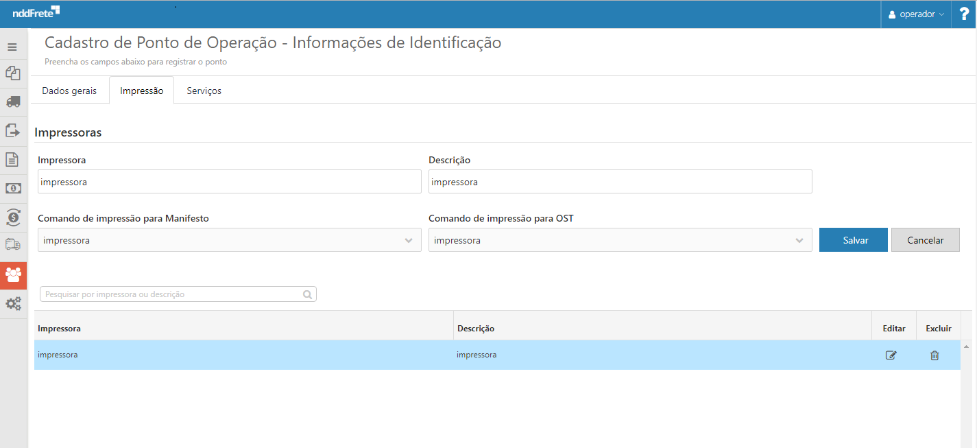 Para vincular uma impressora ao ponto de operação, acesse a aba “Impressão”.