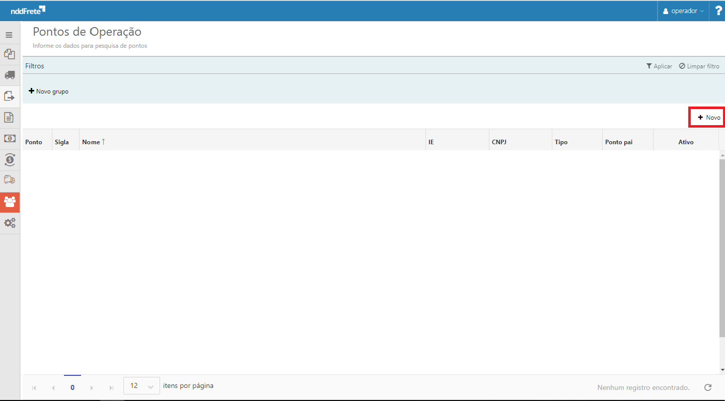 Os registros de pontos de operação retratam as filiais, pontos de apoio e representantes do operador logístico, operantes no Brasil.