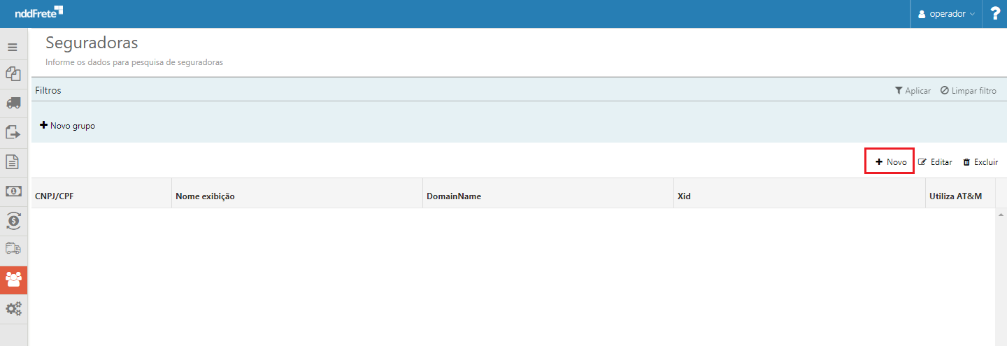 Na tela “Monitoramento de Seguradora” serão listados todos as seguradoras cadastrados no sistema.