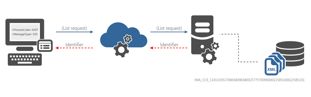 A disponibilização do XML do CC-e dos CT-es emitidos é tratada por dois processos distintos de busca de documentos disponíveis e solicitação dos pacotes relativos a estes documentos. No primeiro processo são apresentados ao solicitante os documentos ainda não consumidos por ele, conforme relacionado na imagem abaixo:
