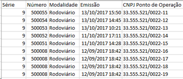 •Modalidade - Modalidade de transporte do CT-e (rodoviário, aéreo, aquaviário, ferroviário, dutoviário, multimodal). NFS-e não possui modalidade.