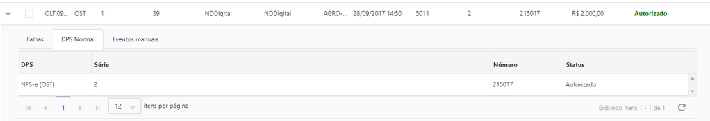 •DPS Normal - Exibe a série, número e status do DPS normal vinculado a OST.