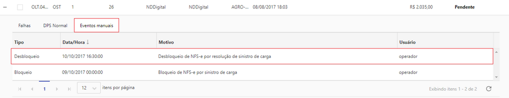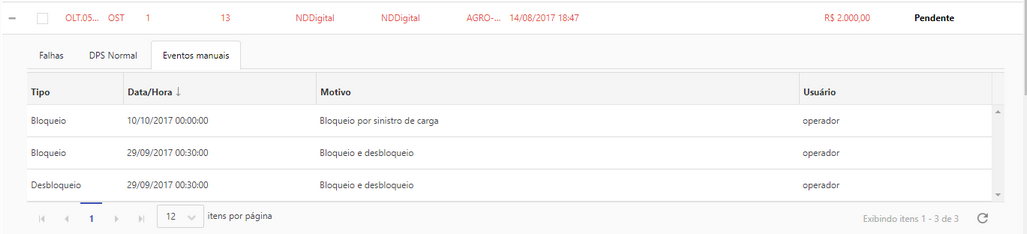 É possível visualizar a data/hora, motivo e usuário que realizou o desbloqueio, nos detalhes na grid, aba de eventos manuais.