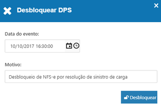 localizada acima da grid, permite realizar o desbloqueio de DPS, bloqueado por motivo de sinistro de carga, para que este possa ser desbloqueado para pagamento.