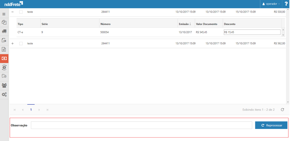 Após aplicar o valor de desconto ao DPS, é possível solicitar o reprocessamento da PREFAT, através do botão "reprocessar", informando a observação que é obrigatória. Então é realizado novamente as validações sob o documento, para determinar qual a situação do mesmo, podendo ser inconsistente novamente, não conforme ou disponível.