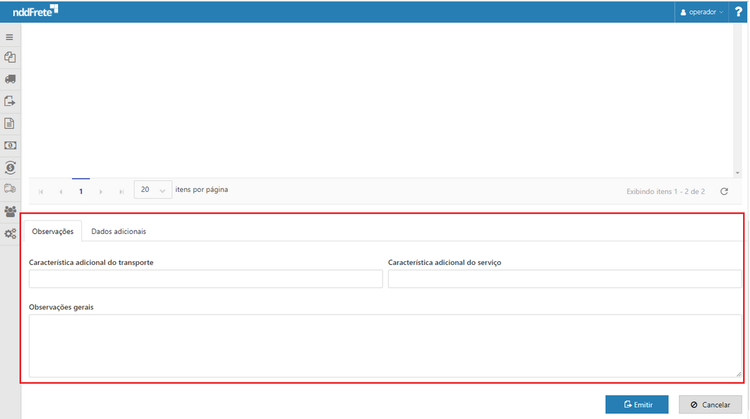 Na parte inferior da tela, estão disponíveis as observações e dados adicionais, para que seja possível informar observações não fiscais.