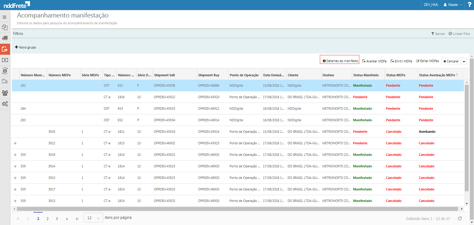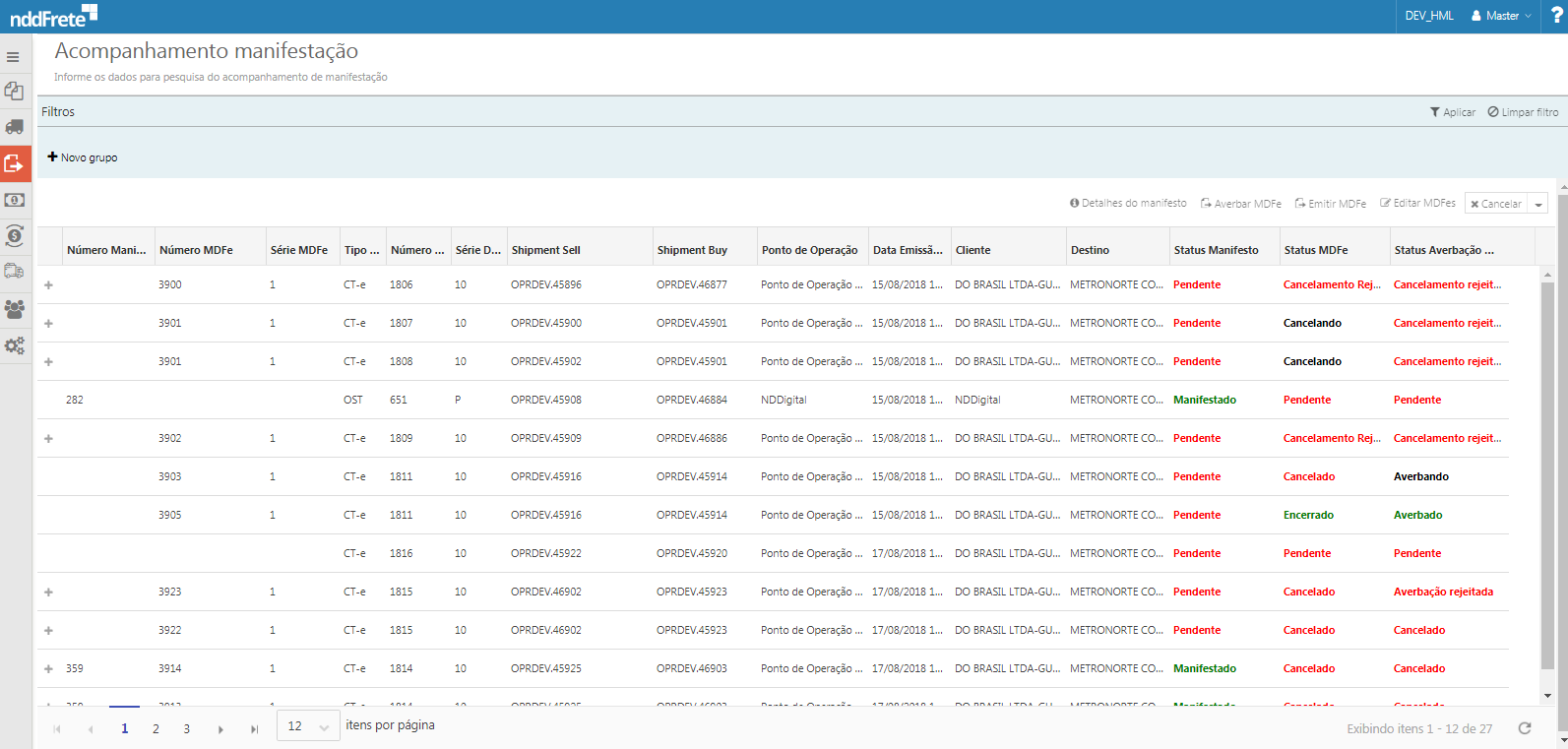 Através da tela de acompanhamento de manifestação, é possível acompanhar o manifesto e o MDF-e dos DPS solicitados através da tela de Gerenciamento DPS.